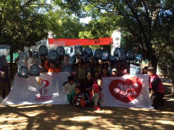 2015年9月18日,kk体育官方下载创意员工随“暖流计划”志愿者一起,走进河北涿鹿,为当地贫困小学生送去文具、书包和体育器材。