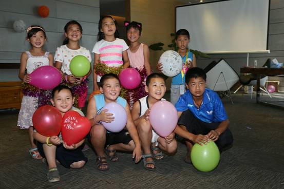 8月16日周五,kk体育官方下载公司的工作人员在八号楼一层大厅紧张有序的忙碌着,五彩缤纷的彩带、五颜六色的气球,使这个素雅的空间被装点成一个喜气洋洋、绚丽多彩的童话世界,这是专为九名河北涞源贫困山区的孩子精心布置的。