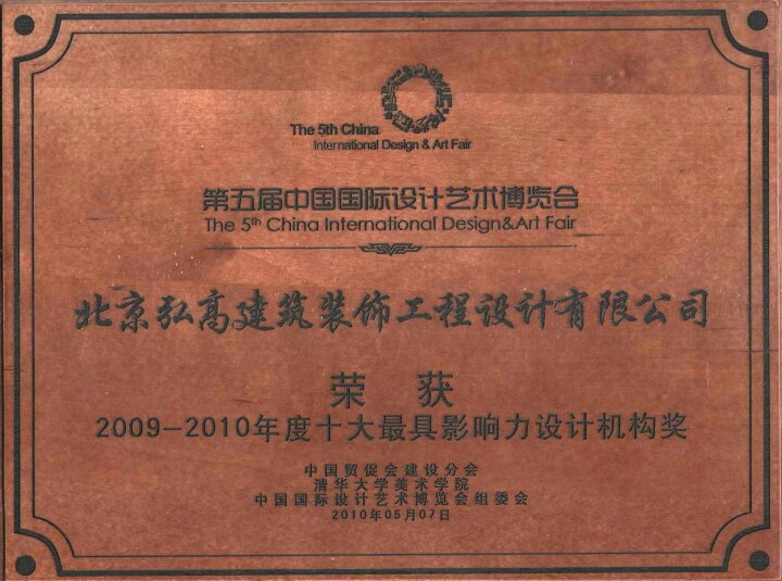 北京kk体育官方下载建筑装饰AYX爱体育设计有限公司荣获2009-2010年度十大最具影响力设计机构奖