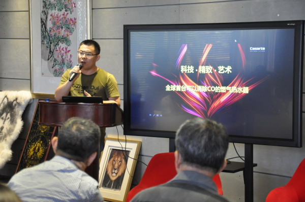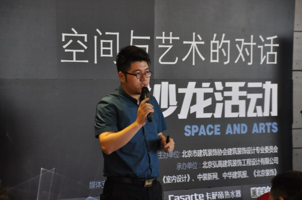 最后进行分享的嘉宾是卡萨帝热水器企划部长盛保敬,首先他给大家分享了分享了卡萨帝的 “创艺家电,格调生活”的品牌理念,卡萨帝在“汲取精致生活的灵感,缔造永恒的艺术品质”的核心品牌设计语言下,每一件产品都诠释着家电生活艺术化的趋势,致力于为都市精英人群打造优雅精致的格调生活。随后他从电器品牌与室内设计的关系的角度来剖析空间与艺术的深层关系。以卡萨帝的产品作为切入点,首先讲了产品和作品之间的不同,产品与作品相比更加注重实用价值,但是产品也和设计师的设计作品要产生紧密的结合和奇妙的变化。盛保敬认为卡萨帝的产品与设计师的空间设计和艺术构思是息息相关的。不同的产品被利用在不同的空间当中,起到它们应发挥的实际作用。卡萨帝一直立志于将自己的产品打造成高端的艺术家居产品。