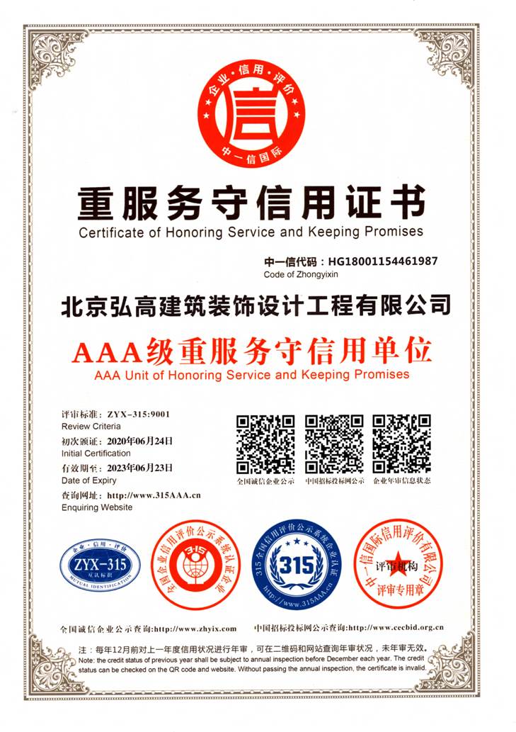 | AAA级诚信经营示范单位 | 行业AAA级诚信示范单位 | 信用等级证书 | 重服务守信用单位 |