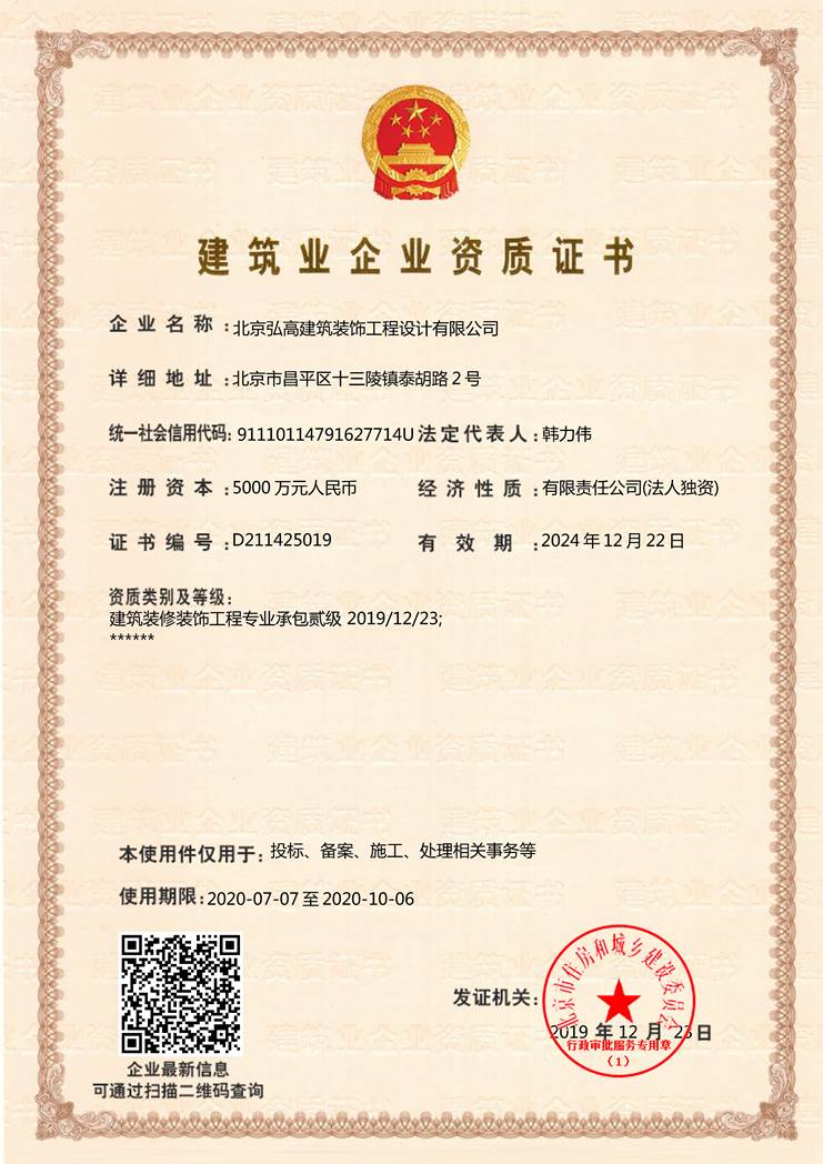 | 营业执照 | 社会信用代码证明 | 建筑企业资质证书 | 建筑企业资质证书 |